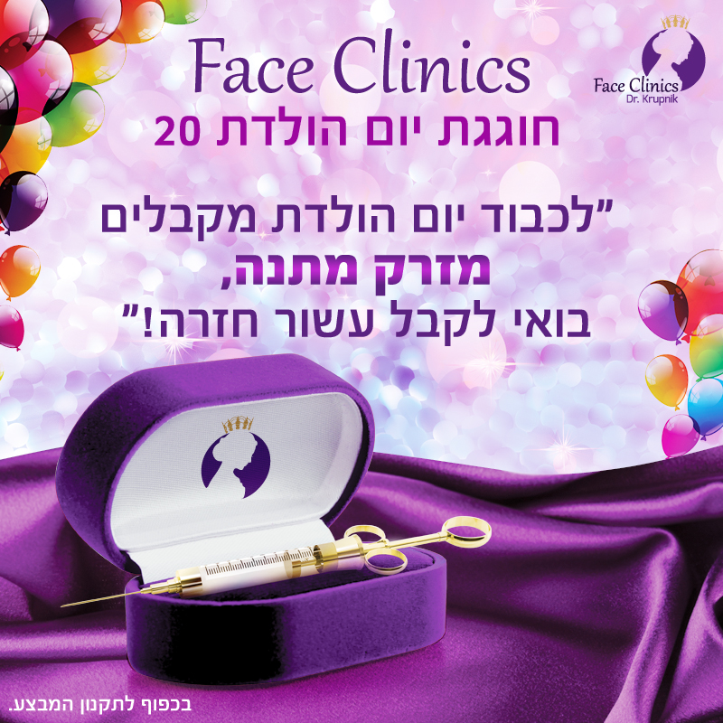לאור התפתחות מתמדת ומהירה בעולם הרפואה האסתטית, בנוסף לעלייה דרמטית בביקוש הרב לרפואה אסתטית וכחלק מהליך ההנגשה של תחום זה. אשר פעם היה שמור רק למעמדות ספצייפיים, יסדנו בשנת 1995 את הסניף הראשון ברשת המרפאות Face Clinics By Dr Krupnik. כאשר לנגד עיניינו עומד החזון של מתן שירותי רפואה אסתטית מהמתקדמים והטובים בארץ. כמו כן להעניק מענה לביקוש העולה תוך כדי שמירה והקפדה על מקצועיות ושימוש בשיטות המתקדמות ביותר, אשר מעניקות את התוצאות הטובות ביותר.